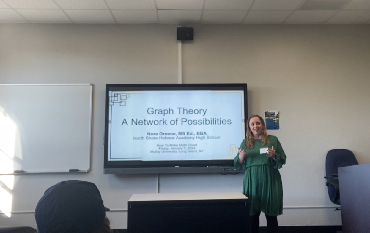 From my school’s parent newsletter: “Math Faculty Member Nora Greene Makes Advanced Math A Breeze at Annual Conference” – “How early can students grasp Graph Theory? According to math teacher Ms. Nora Greene, even our youngest learners can understand its complexities. Ms. Greene was recently chosen to present at the annual How to Make Math Count Conference. The event, which is organized by the Nassau County Math Teachers Association and Nassau County Association of Math Supervisors, brought together hundreds of mathematics educators at Molloy University for a day of learning, activities, and conversation. Ms. Greene, who has been teaching high school math for 13 years, took the stage to demonstrate how Graph Theory – a topic usually reserved for advanced high school and college math classes – can be made engaging and exciting at lower grade levels. With age-appropriate tools and techniques, Ms. Greene shared, younger students can intuitively grasp this complex, fascinating area of math and prepare for higher-level learning. Congratulations to Ms. Greene on this accomplishment! We can’t wait to hear how her innovative ideas change the Graph Theory game for teachers across Long Island.”